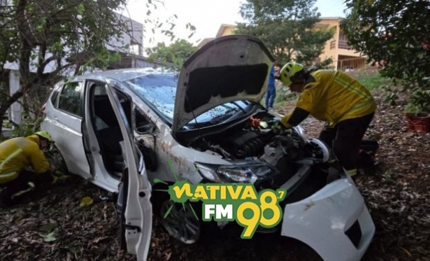 De acordo com as informações apuradas pela reportagem da Nativa FM, a motorista, identificada pelas iniciais DD, conduzia um Honda Fit, com placas do município, quando perdeu o controle da direção ao acessar uma garagem. O veículo saiu da pista, desceu uma ribanceira, capotou e parou após atingir uma árvore nas proximidades de residências.